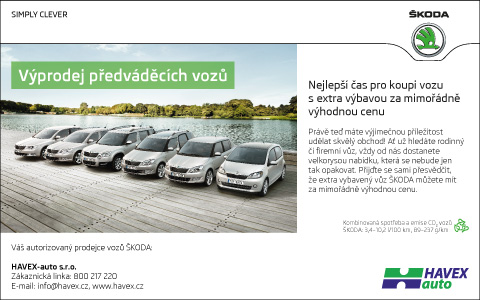 Připravili jsme pro Vás výprodej předváděcích vozů Škoda přímo z firmy HAVEX-auto. Pořiďte si vůz s minimálním stářím a počtem najetých kilometrů za velmi zajímavých podmínek. Předváděcí vozy jsou ve srovnání s bazarovými vozy v lepším stavu a mají jistý původ. Tyto vozy jsou servisovány přímo u nás. Nabídka vozů platí do vyprodání zásob.