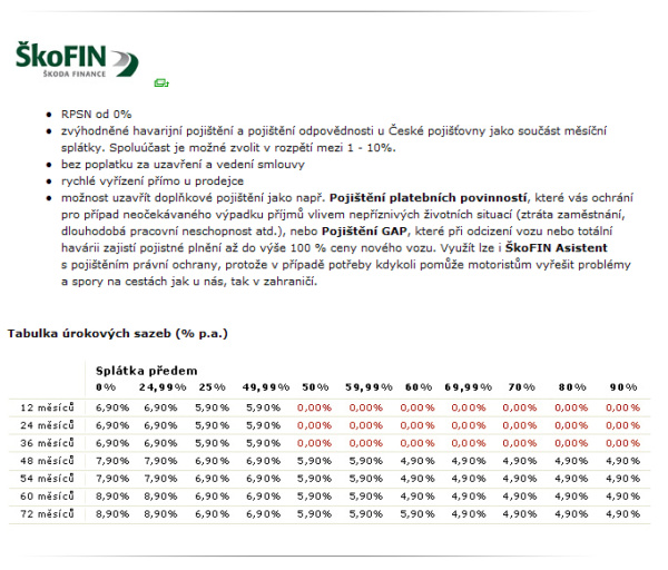 - možnost uzavřít doplňkové pojištění jako např. Pojištění platebních povinností, které vás ochrání pro případ neočekávaného výpadku příjmů vlivem nepříznivých životních situací (ztráta zaměstnání, dlouhodobá pracovní neschopnost atd.), nebo Pojištění GAP, které při odcizení vozu nebo totální havárii zajistí pojistné plnění až do výše 100 % ceny nového vozu.